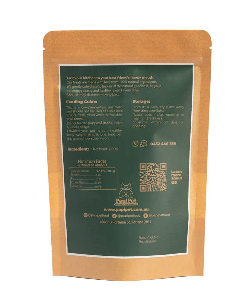 • Single-Ingredient Treat – made from 100% Australian beef heart, nothing else.